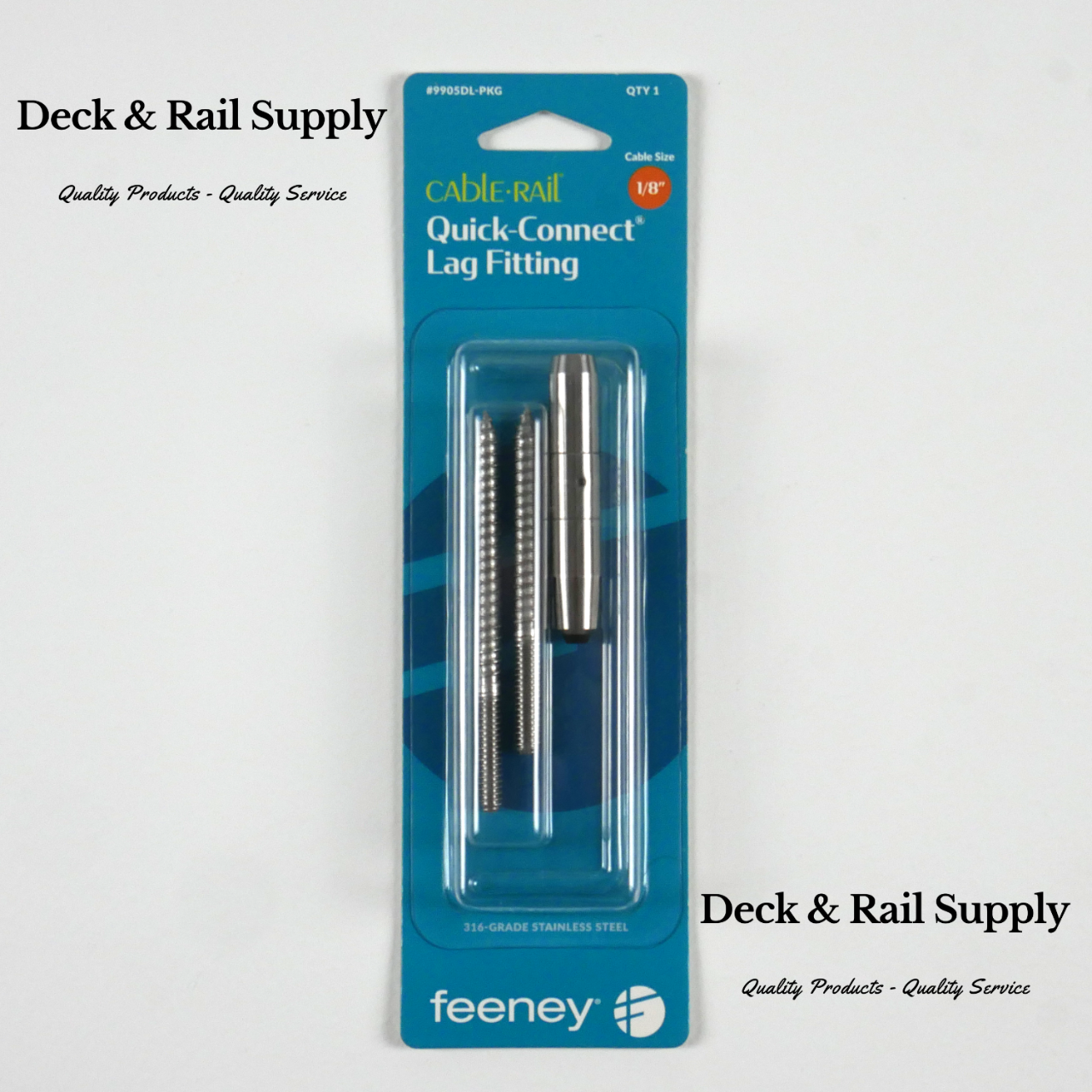 Horizontal stainless steel exterior cable fittings and components for any situation or project! Feeney Horizontal cable fittings can be attached to wood, composite, steel, aluminum, or any other structure! Feeney fittings like 9905 are no tensioning and pair with tensinoing fittings like 9910 for a complete cable run